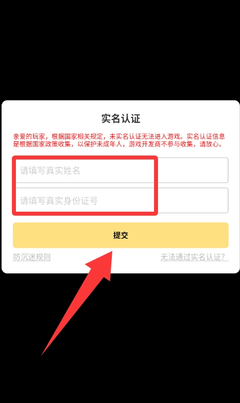 填写实名姓名和身份证号码并提交。