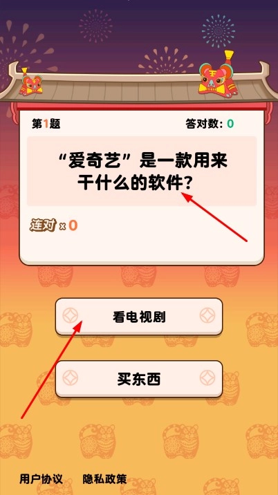 进入游戏后,在答题界面会呈现当前题目,例如“爱奇艺是一款用来做什么的软件”,题目类型包含知识问答、常识判断等。