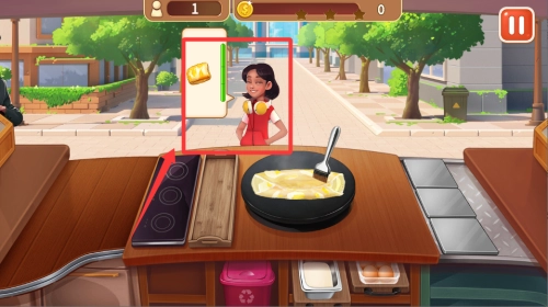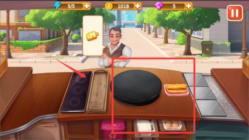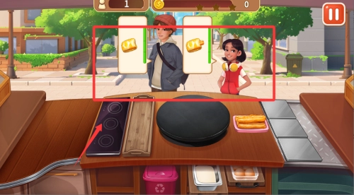 进入游戏后,首先要熟悉餐车的操作方式;接着点击顾客的头像,查看他们所需餐品的图片;在快速识别餐品信息后,就可以开始进行制作了。