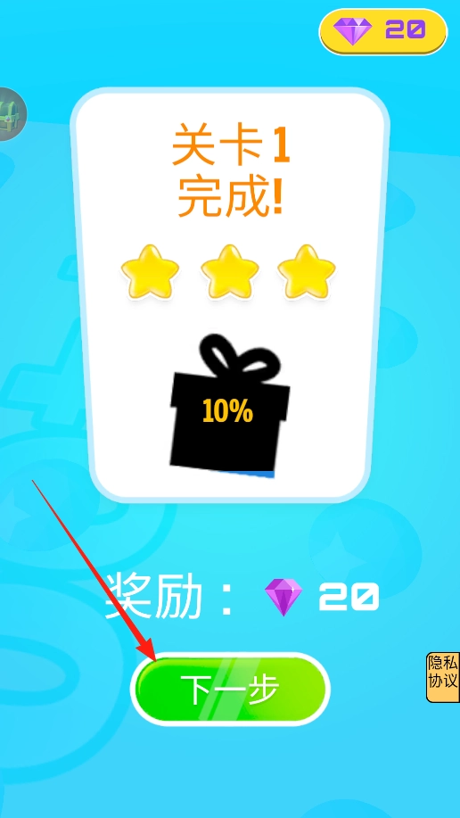 关卡1已完成,成功获取星星与钻石奖励!现在点击下一步按钮,就能进入全新关卡,挑战难度更高的跑道,收集更多宝贵的宝石,看看方块能堆叠到多高,还能解锁更多关卡和丰厚奖励,继续沉浸在游戏的乐趣中吧!