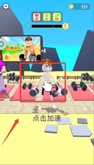 采用夸张的卡通美学风格进行设计,打造出极具喜感的健美先生形象。在训练过程中,角色的体型会发生显著改变,从身形瘦弱的新手慢慢蜕变为肌肉发达的猛男。