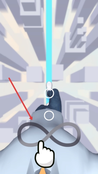 游戏开始之际,遵循界面给出的提示,沿特定轨迹滑动屏幕,以此操控角色的移动方向与节奏,让角色开启在轨道上的行走。