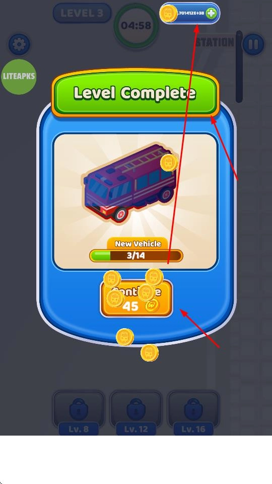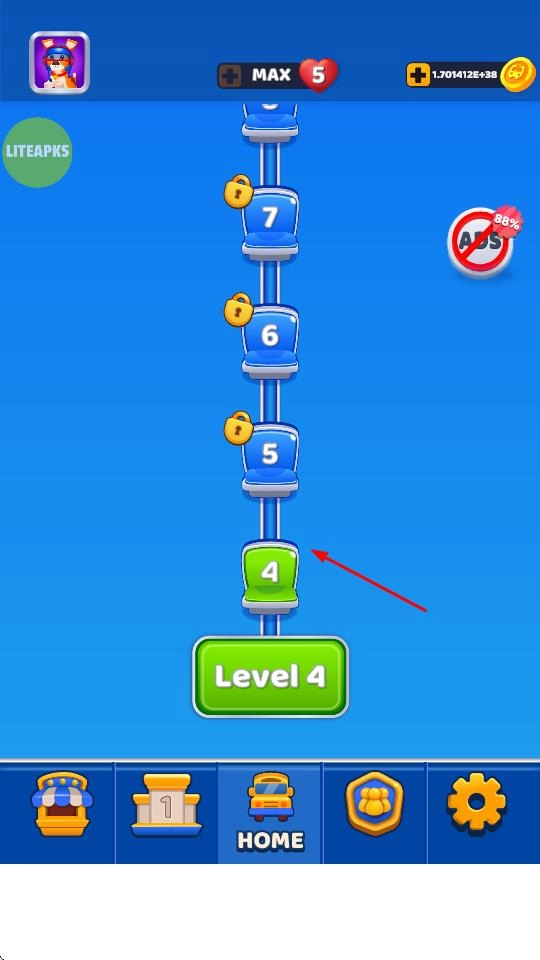 在关卡选择界面,点击Level 4之类的按钮就能进入后续关卡,继续挑战难度更高的载客任务,以此积累更多游戏资源。