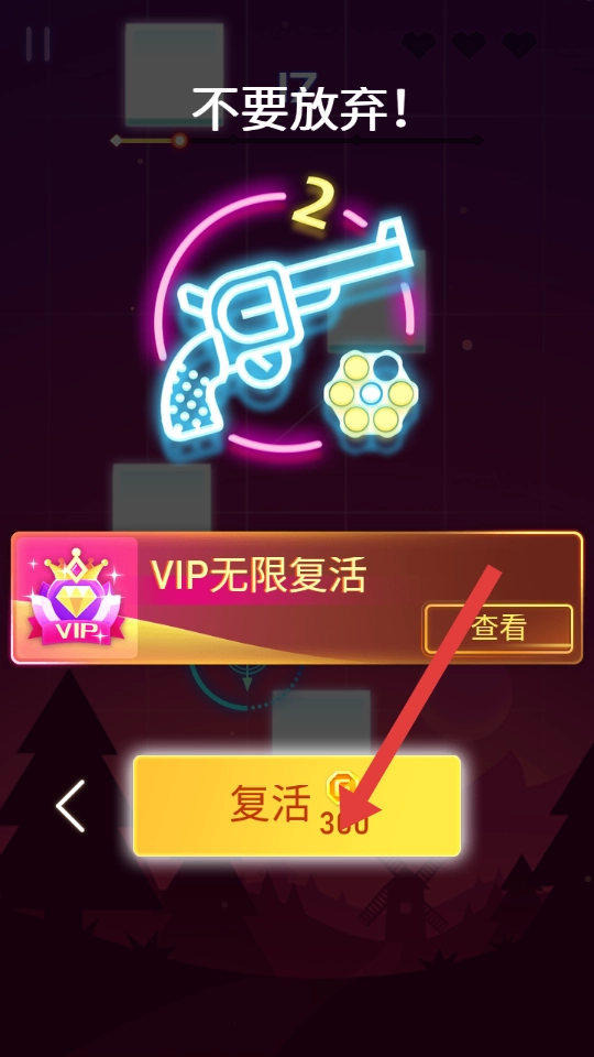当生命值用完时,你可以选择消耗300金币来复活,这样就能接着玩游戏,不会因为失败而停下闯关的脚步,从而有机会通过更多关卡。