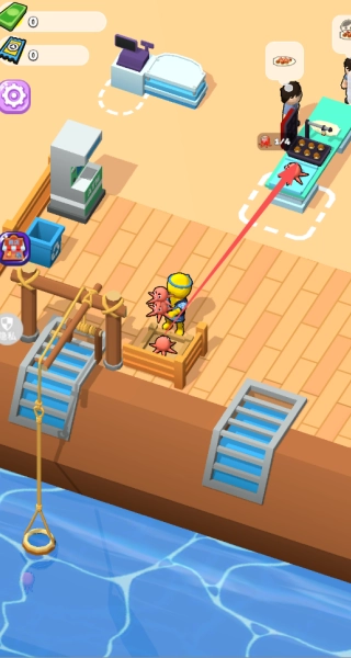 食材不够的时候,需要前往码头进行购买。