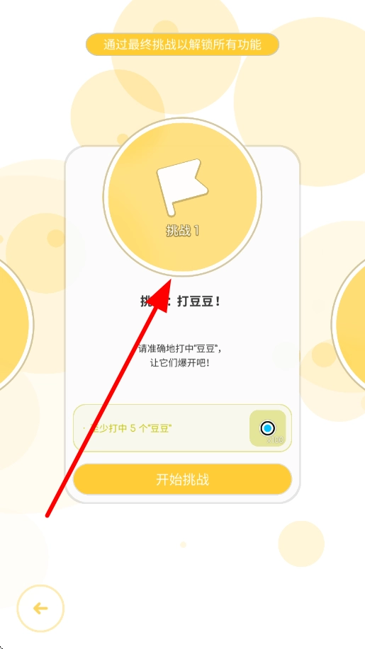 接下来,在挑战界面中点击“开始挑战”按钮,进入挑战场景后,按照提示进行精准操作,击中豆豆等目标使其爆开,以此推动挑战进程。