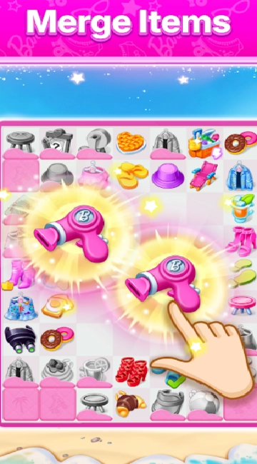 游戏的核心玩法是把两个相同的低级物品合成一个更高级的物品,合成的标志性物品包括发刷、时尚配饰以及怀旧的芭比玩具套装等。