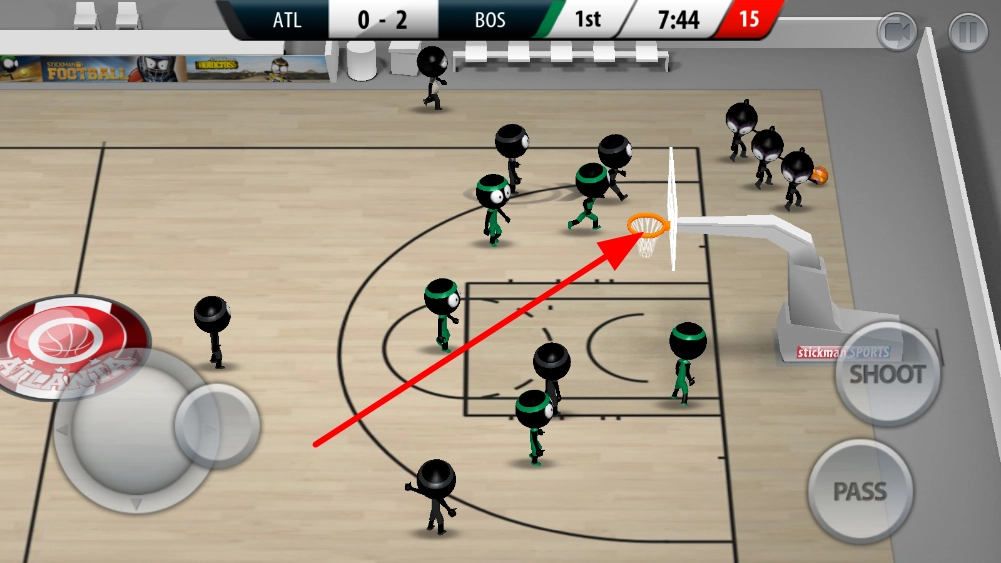 基础动作的掌握要点在于:玩家得熟悉运球、传球、投篮这类基础操作,借助虚拟摇杆和按键的协同配合来操控火柴人球员,从而实现各类技术动作的组合运用。