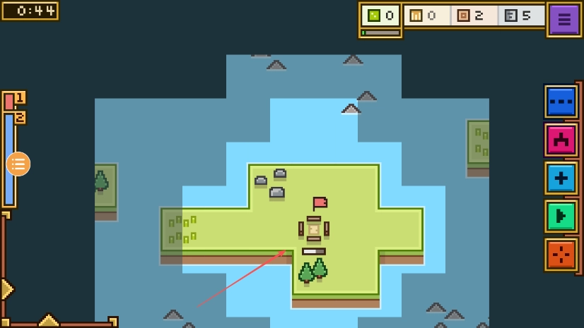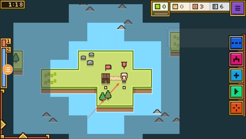 进入游戏时,记得留意上方的倒计时,同时观察岛屿的地形以及初始建筑的位置。