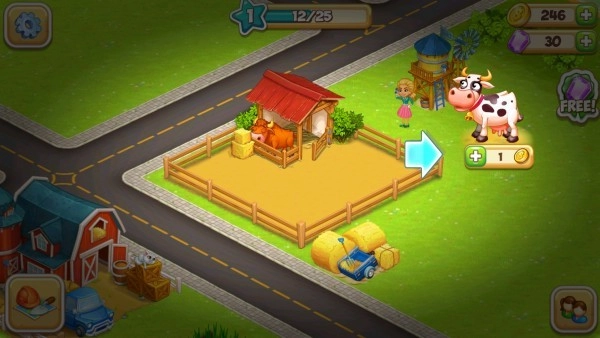 除了种植作物,养殖动物同样是农场不可或缺的部分。玩家能够前往圈养动物的区域,选购一头牛,并且对它进行喂养。