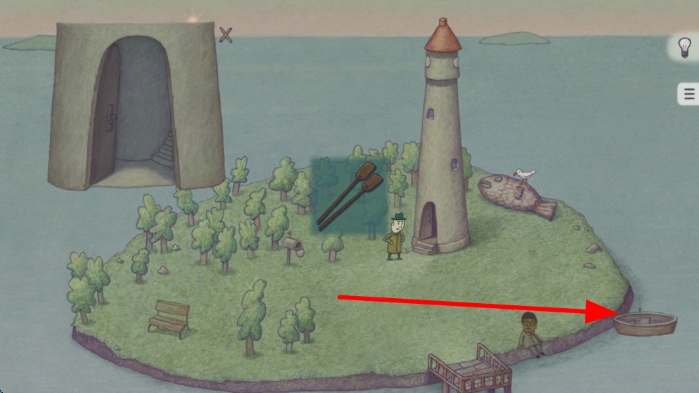 点击你想要前往的位置,角色就会移动过去,借助这种操作方式,能够探索各个不同的区域,寻找解开谜题所需的关键物品或者线索,从而为之后获取船桨之类的操作做好准备。