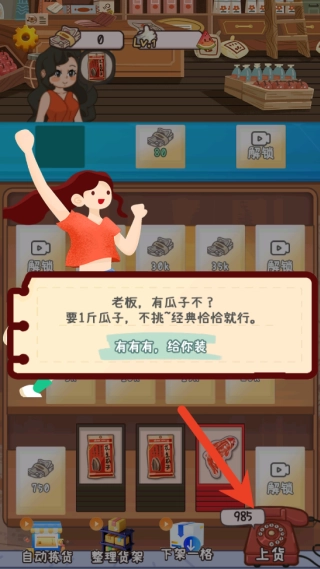 游戏开启后,你会从一个初始的路边小摊开始经营,通过点击摊位来收集金币,以此获取你的第一笔启动资金。