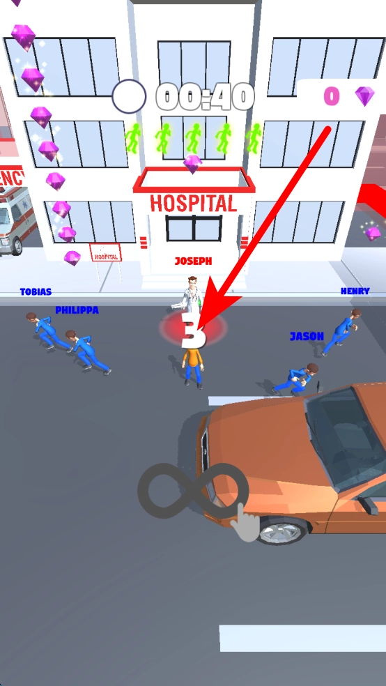 游戏过程中,得留意上方的时间显示,在规定时间内,尽量带着收集到的宝石抵达安全区域,别被医生抓住,保证能顺利推进游戏进程。