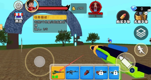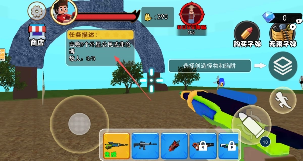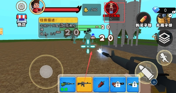 进入游戏之后,查看左上角的任务描述:击败5个外星公民或者弗伦博。