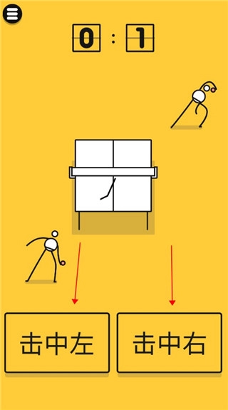 2、游戏开始后,我们需要观察对手的击球情况并做出判断,若球在左边就点击“击中左”,若球在右边则点击“击中右”。
