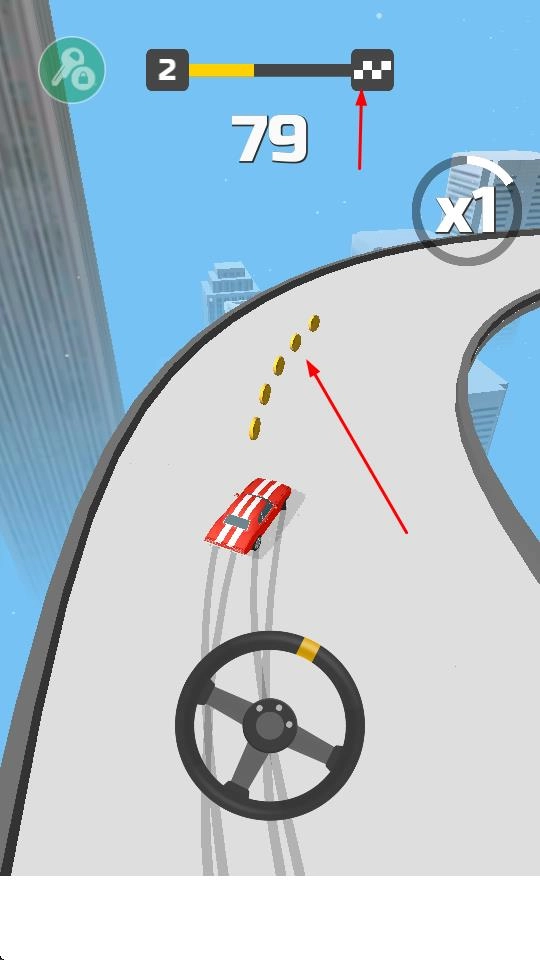 握住方向盘,操控赛车在高空赛道上驰骋,借由调整方向躲开赛道边缘,让赛车始终平稳前行。