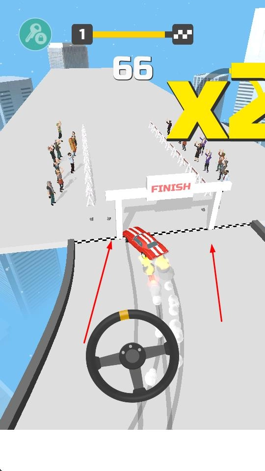 驾驶赛车朝着终点FINISH疾驰,只要抵达终点就能完成当前关卡,并获得对应的奖励。
