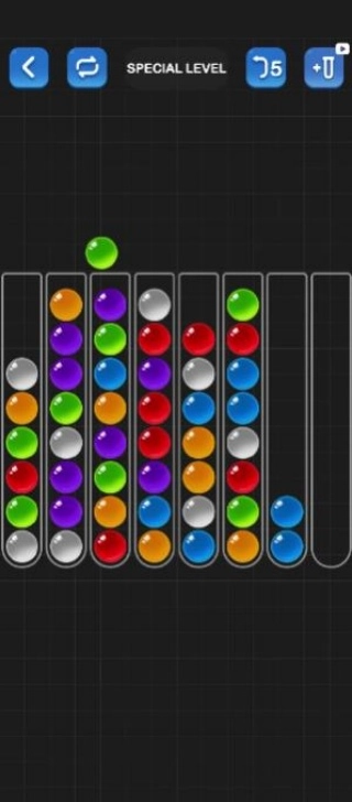 点击任意一根管子,就能选中顶部的彩球;接着点击想要放置的目标管子,彩球就会移动过去。