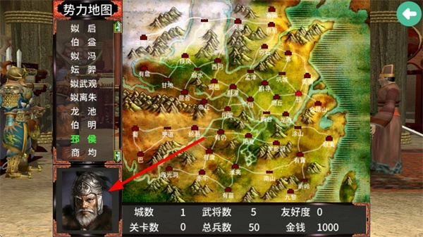 查看势力地图,了解己方势力的城数、武将数等信息,能清晰把握战略布局,从而为发展内政制定计划。