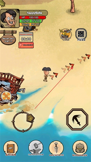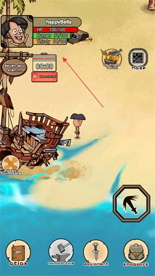 当遭遇怪物时,点击攻击按钮就能运用武器发起战斗,以此保障自身的安全。