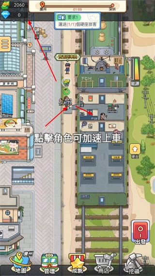 点击对应的角色,能够加快乘客上车的速度,提高运营效率,使列车更准时地发车。