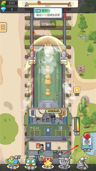 在列车运行时,按下加速按钮可以提升其行驶速度,从而减少行程耗时,更高效地达成运输目标。
