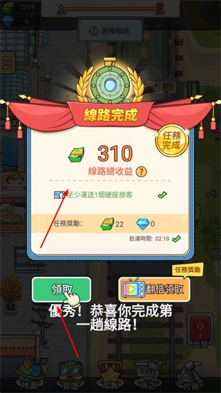 线路运行结束后,点击领取按钮就能拿到线路总收益之类的奖励,要是想得到更多,还可以选择翻倍领取。