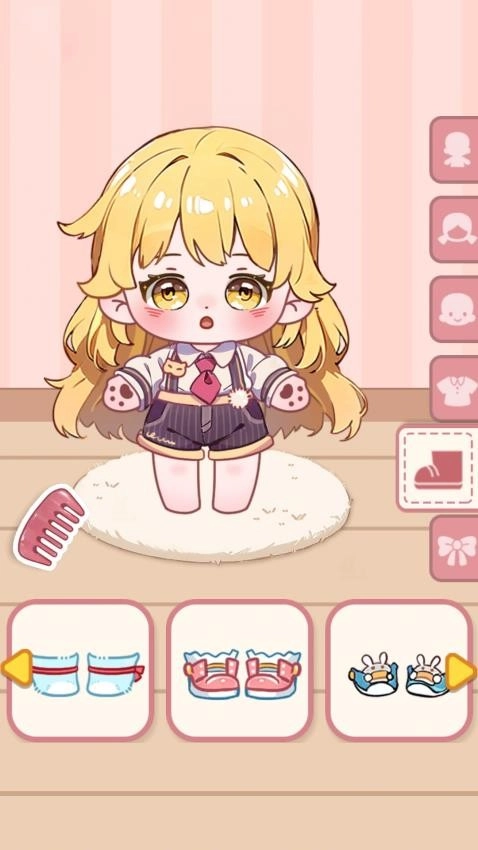 DIY棉花娃娃是一款十分有趣的休闲装扮游戏。在游戏里,你能解锁各式各样的服饰,为这些棉花娃娃设计全新的造型,还可以随意挑选心仪的装饰物件,像帽子、蝴蝶发卡之类的,以此来获得更完美的装饰效果。衣橱中可以存放多套服装,你能够把它们取出来进行搭配尝试,这些服装无需解锁就能直接使用,方便你及时发现更棒的装扮组合,尽量依据这些好的搭配思路来进行调整。打扮时还需要考虑相关的因素,比如发型、发色、衣服的长短等,这样才能打造出绝美的造型,让这些娃娃变得更加可爱。要是你也对这款游戏感兴趣,不妨来体验一下吧!