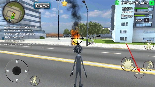 点击右侧的技能图标,运用特殊技能来破坏车辆等目标,以此完成DESTROY VEHICLE任务,丰富游戏玩法。