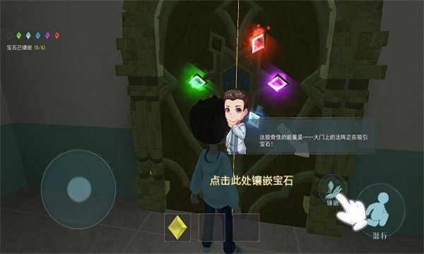 把宝石带到神秘逃生之门旁,赶紧将收集好的宝石镶嵌进去。