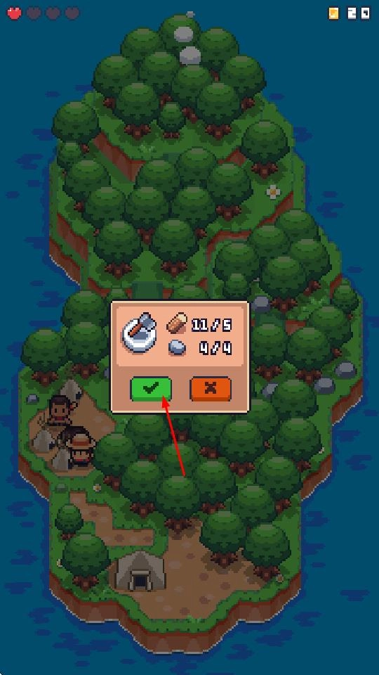 进入荒岛后,首要任务是收集资源以奠定基础:操控小人前往森林等区域,拾取地面的木材、果实,寻找可饮用的水源,并将收集到的物资分类储存,为后续搭建庇护所做准备。