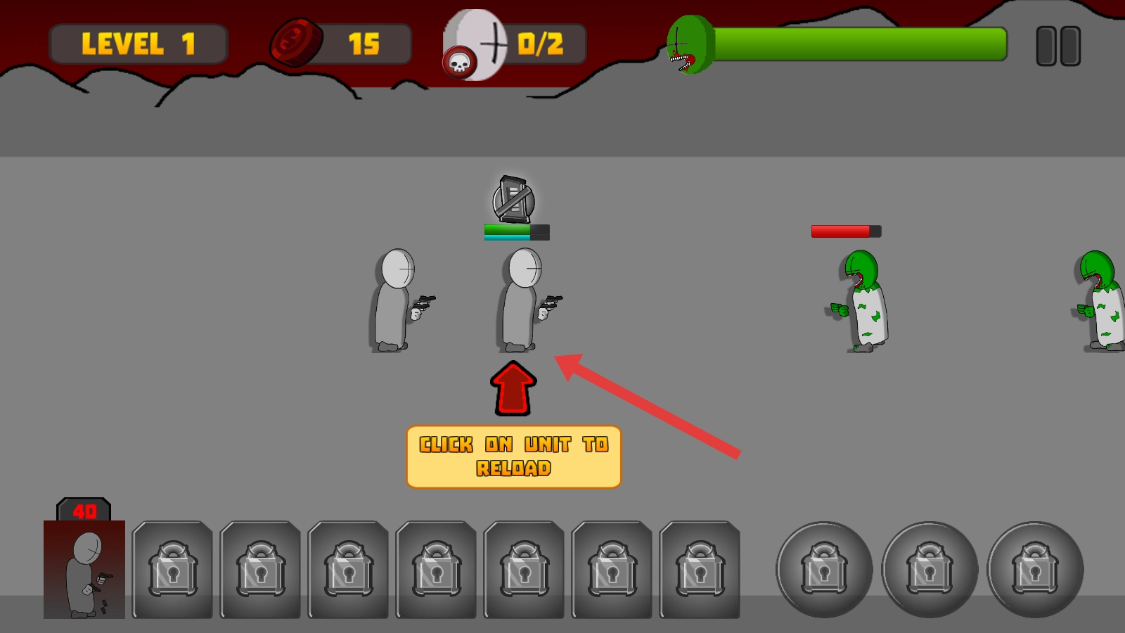 点击士兵来完成装弹操作,以此保证士兵能持续输出火力,在战斗过程中维持攻击状态,从而应对一波接一波袭来的僵尸。