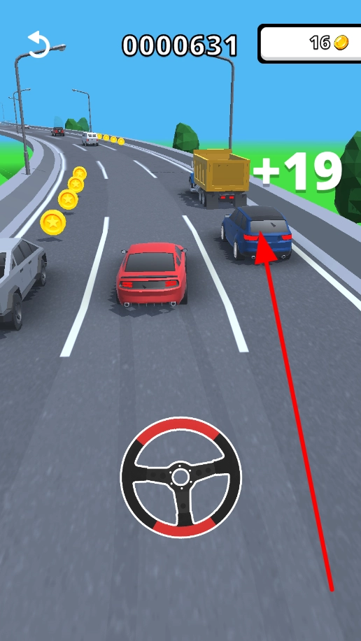 你可以通过滑动屏幕来操控车辆左右移动,借此避开前方和周围的车辆,保障行驶安全,从而为不断获取分数与金币创造有利条件。