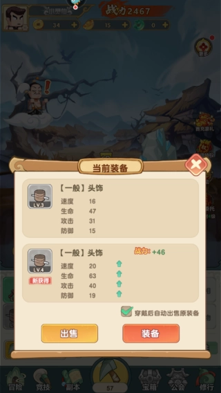 把获取到的装备和自己现有的装备做对比,留下属性更高的装备,把属性较低的装备卖掉来换取铜币。