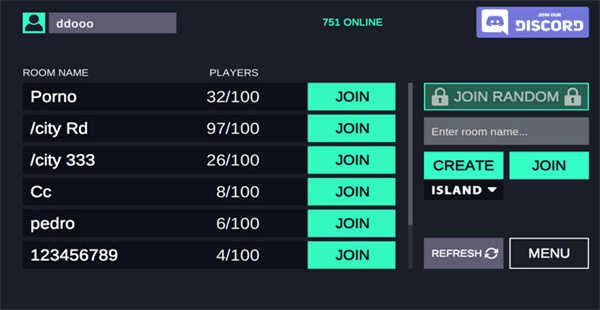 进入新界面后,可从左侧任选一个房间并点击“join”加入,也能点击右侧的“create”来创建新房间。