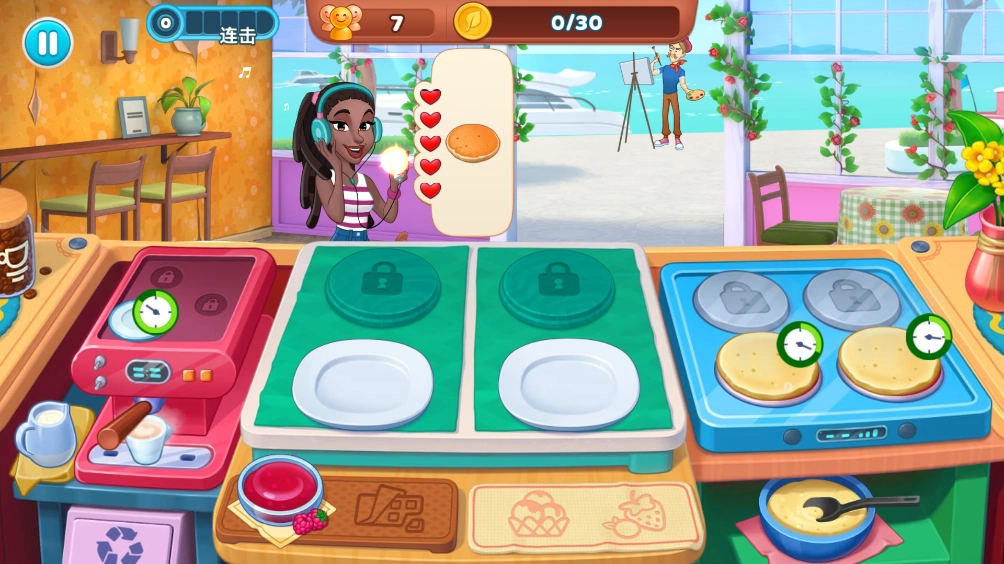 玩家得进入游戏关卡,给顾客制作他们喜欢的食物,每个关卡都设有通关目标。