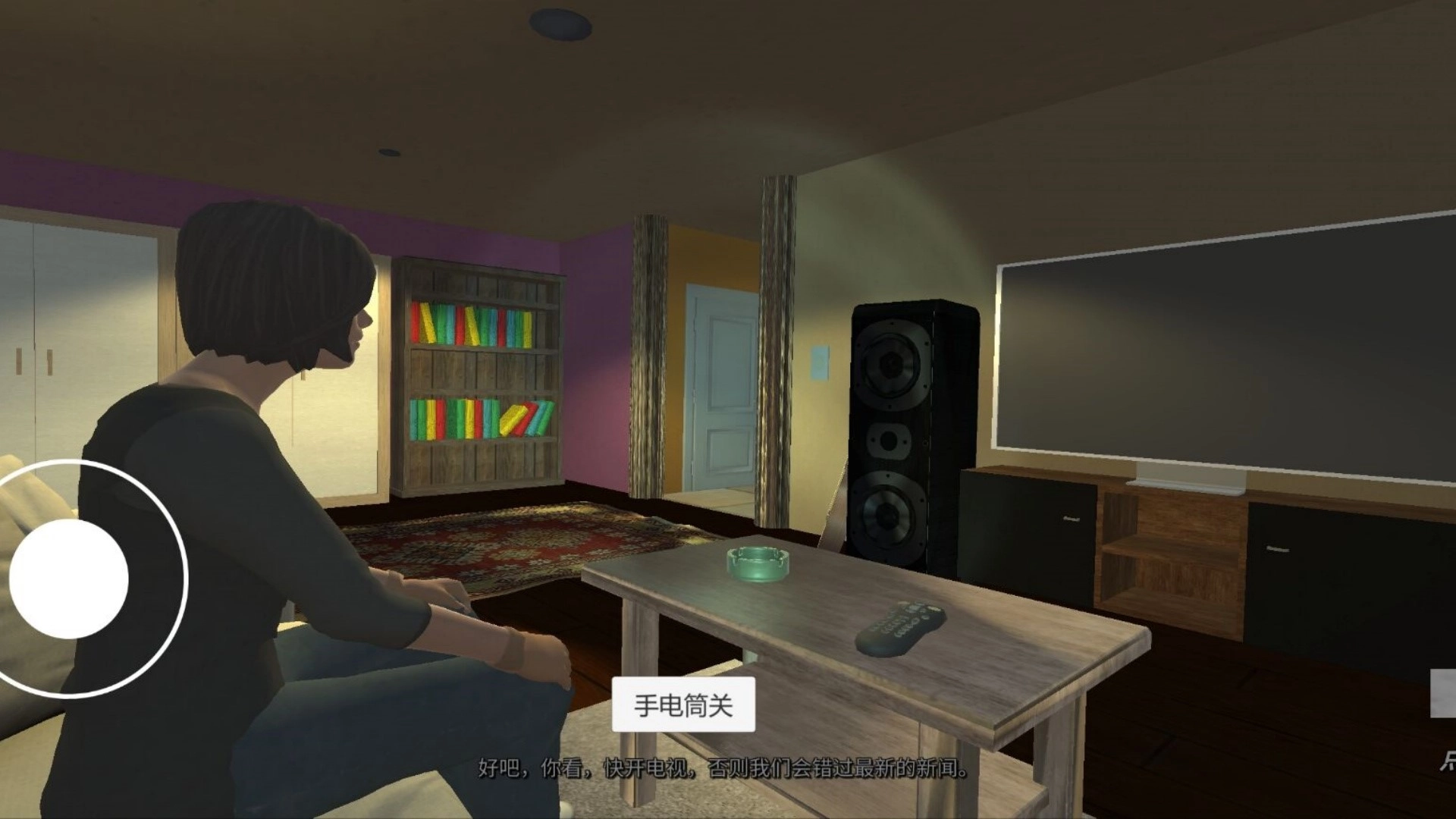 2.使用左侧的虚拟按钮来操控角色的行动方向,右侧用于控制交互以及视角的调整。