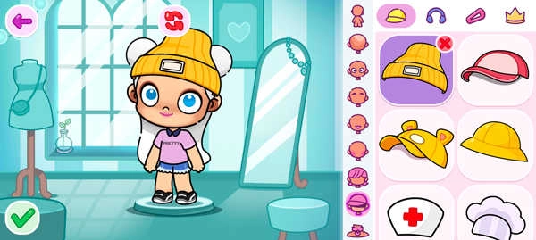 玩家可点击右下角的角色按钮自定义新卡通角色,调整肤色、发色、服装颜色等细节;完成创建后,点击左下角的√图标就能保存设置。