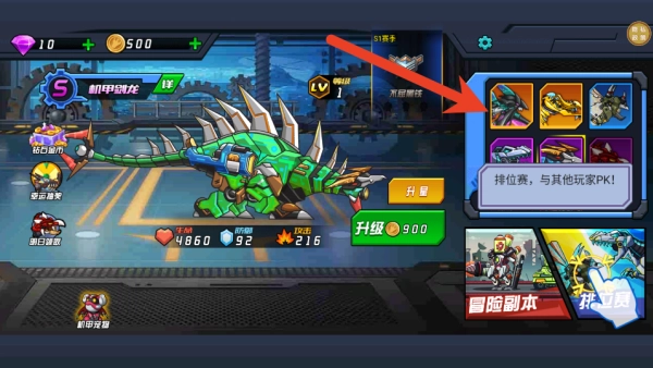 1、进入游戏后,您首先需要获取并选择心仪的机甲恐龙,在基地中利用战斗获得的资源来强化它的属性、解锁或升级其独特的炫酷技能。