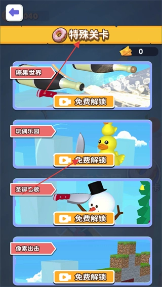 玩家可以解锁特殊关卡,这些关卡拥有独特的场景和切割目标,能给玩家带来别样的游戏体验。