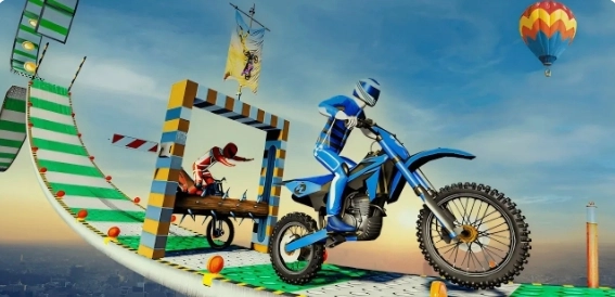 1、极限3D摩托车骑行中文版玩家需要对机车的加速,刹车,倾斜进行精准的操控,来应付各种各样的空中挑战。