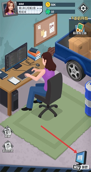 2、升级角色的技能和研发游戏的技术去优化工作室制作的游戏品质和独特的玩法亮点;