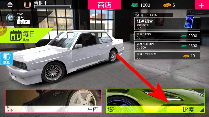 1、在商店界面点击比赛按钮,即可进入赛事准备相关界面。