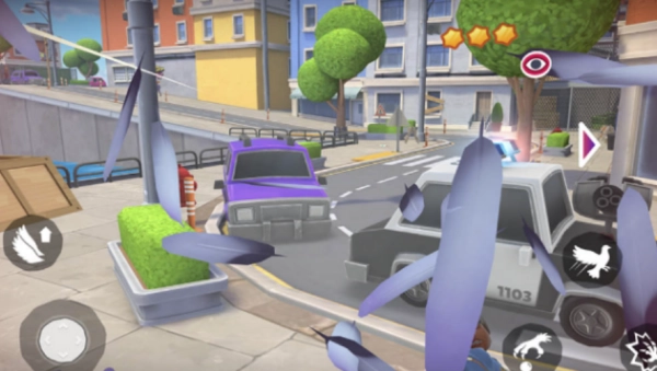 进入游戏后先熟悉飞行操控,通过滑动屏幕来调整方向、控制高度,然后在开放场景里探索可以互动的路人与物品。