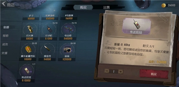 其他道具我不太建议选。传送现在是最实用的,从侧门进去碰到什么就捡什么,然后去找蜀棺,三个蜀棺每个至少三千,加起来怎么都有一万。不用带手电筒,传送主要是为了两点之后能安全返回,算是留个后手。