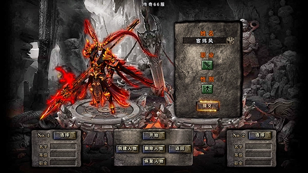 进入游戏后创建角色,挑选自己心仪的职业、姓名和性别,随后点击提交按钮。
