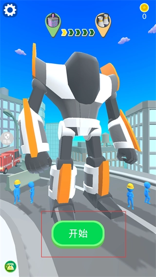 玩家在游戏结束后,若想继续挑战,可在游戏主界面点击开始按钮,进入城市战斗场景,开启机器人英雄的任务挑战。
