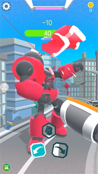 玩家可借助屏幕上的左右虚拟方向键控制机器人行进,在遭遇敌人时,松开指定的攻击按钮即可向敌人发起进攻,从而清除城市里的敌人。