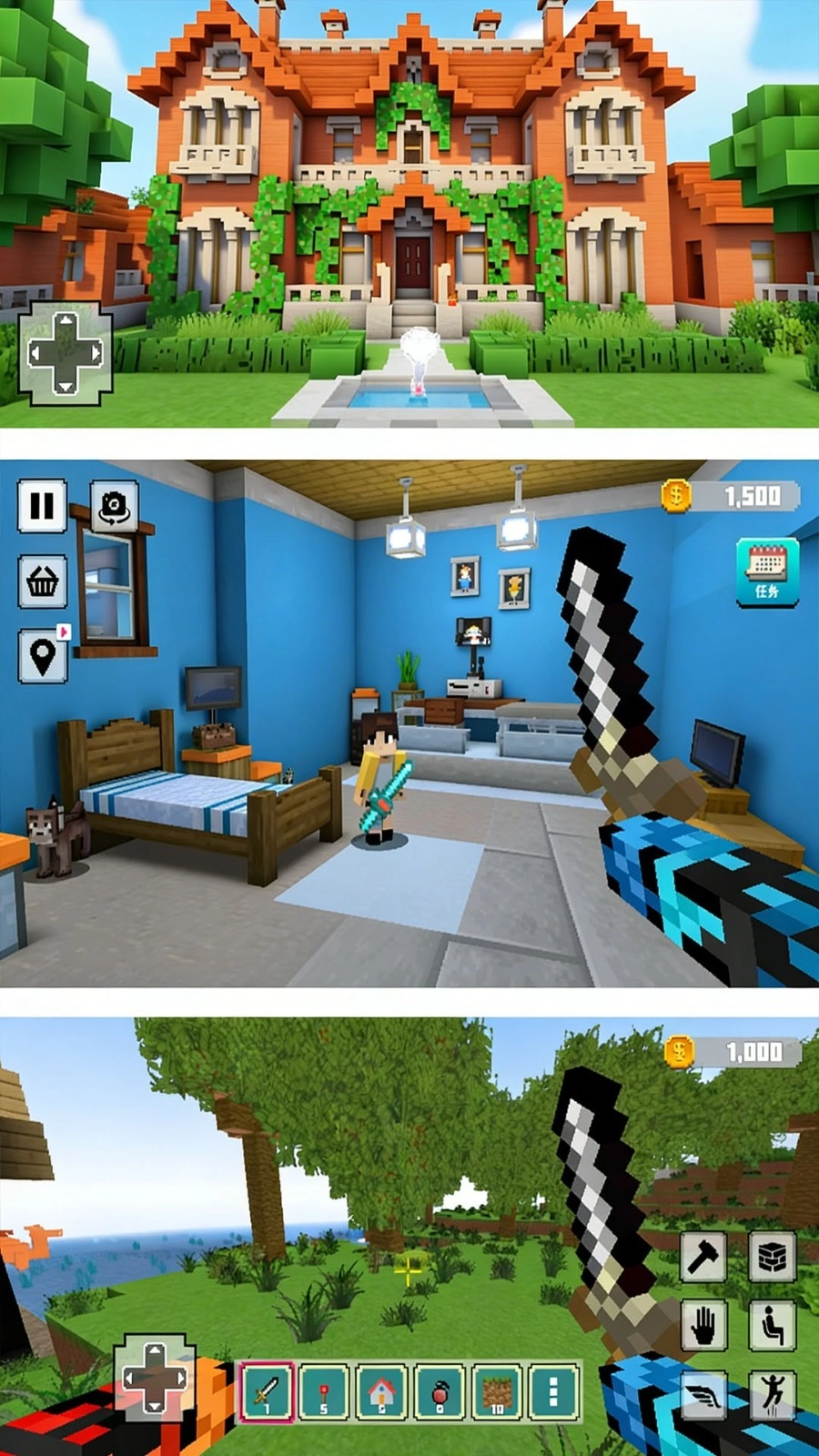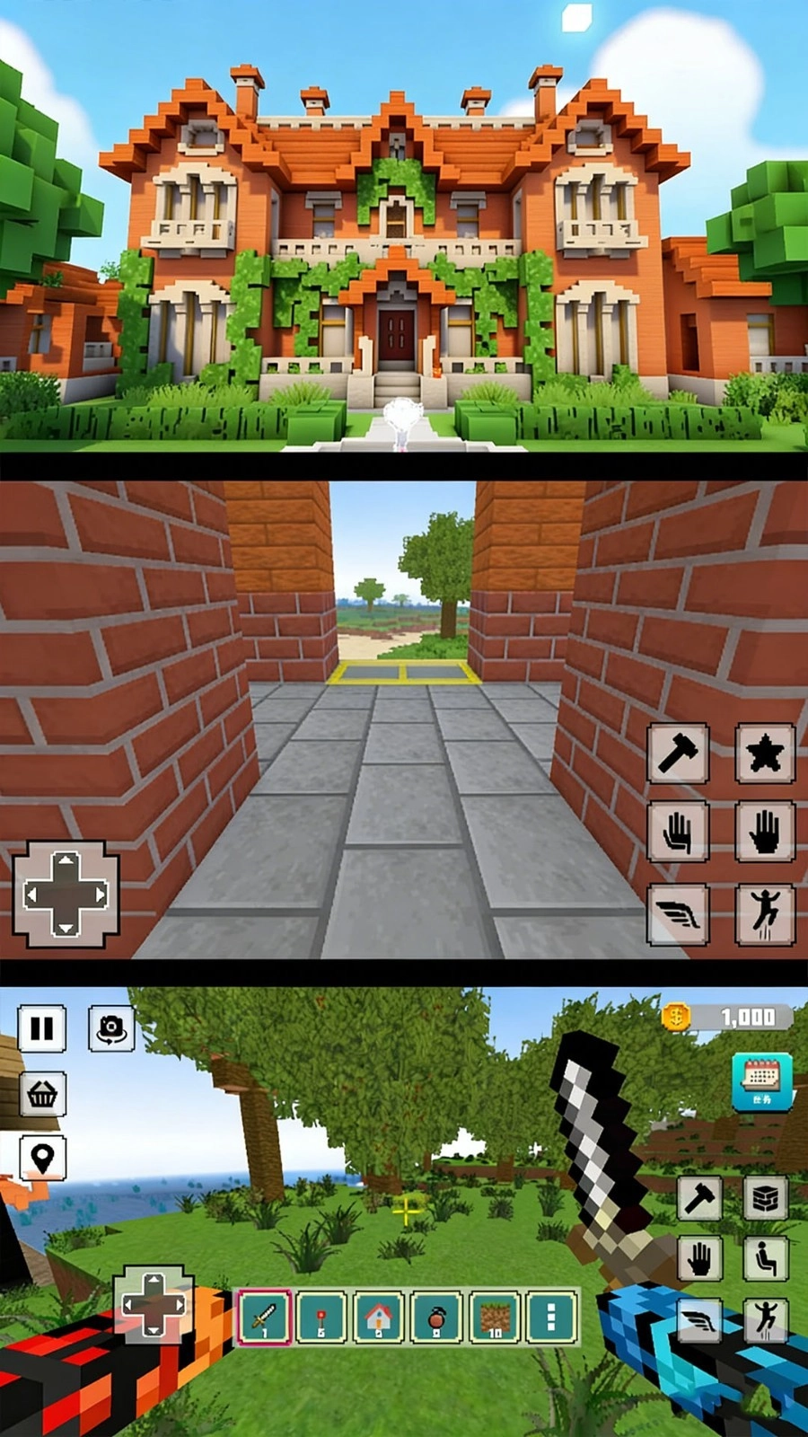 1、玩家可以利用各种方块,在开放世界中自由建造房屋、城堡、矿井等建筑,同时也可以通过破坏方块来获取资源。