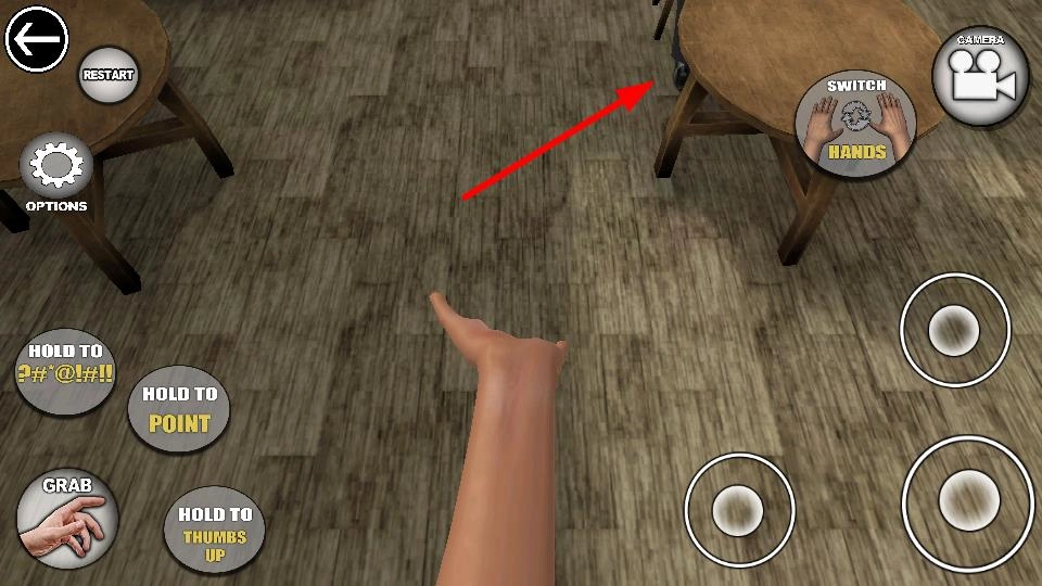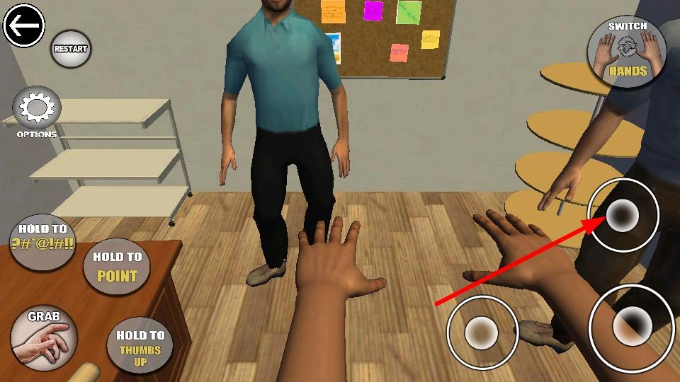 点击右侧的操作按键,操控手部完成对应动作,与场景里的人物或物品进行互动,以此推进任务。